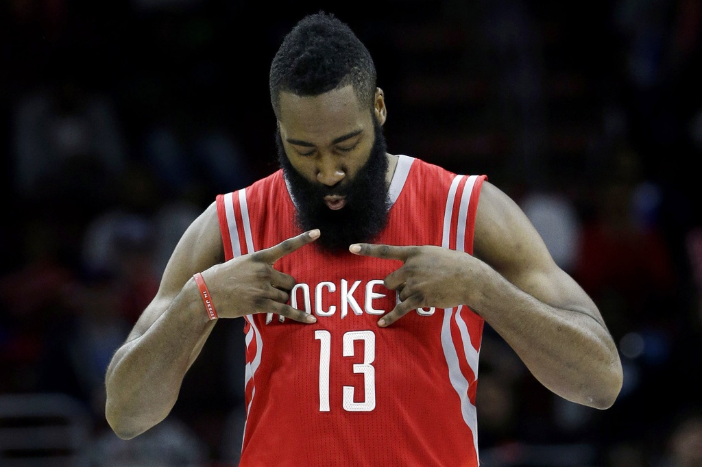 2019年1月哈登场均砍下恐怖的43.6分8.7板7.6助。
