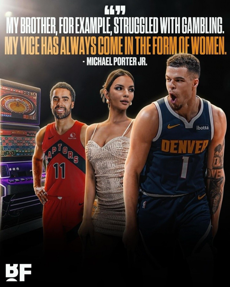 8月12日讯 篮网球员小波特在他最近发布在视频中谈到了自己的个人困境,他说每个人都会在不同的事情上挣扎,比如他的兄弟琼泰-波特对赌博有瘾,而他自己的软肋则是女人。