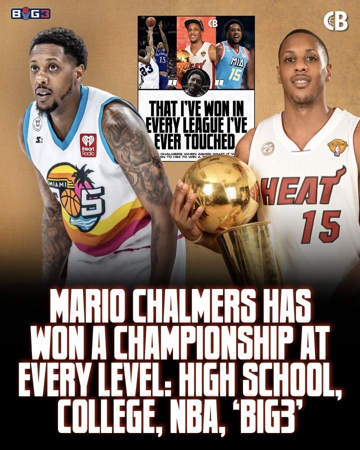 生涯至今,查尔莫斯获得了2次高中联赛州冠军,1次NCAA冠军(2008年,堪萨斯大学,查尔莫斯当选MOP),2次NBA总冠军(2012年&2013年,热火)和今天获得的BIG 3联赛冠军。