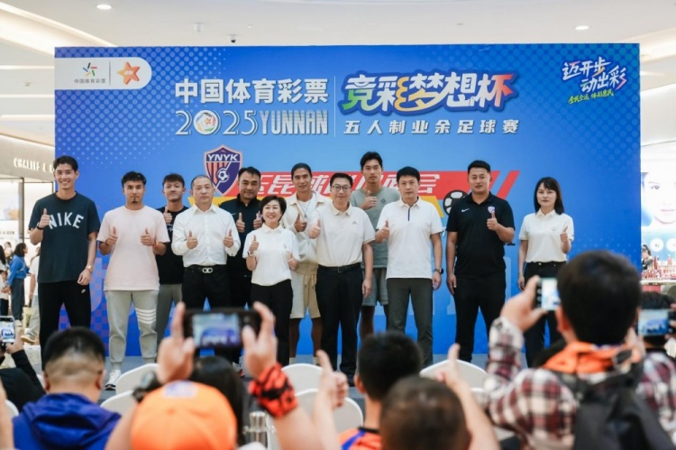 启动仪式上,云南省体育局副局长邢晋、云南体彩中心主任张锦、云南玉昆俱乐部副总经理顾文祥、云南玉昆足球队队长赵宇豪、同德昆明广场副总经理刘琦等领导和嘉宾共同按下了中国体育彩票2025年“竞彩梦想杯”五人制业余足球赛的启动按钮,正式拉开本年度赛事的大幕。