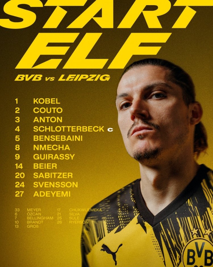 33-迈尔、6-厄兹詹、7-乔布-贝林厄姆、10-布兰特、13-格罗斯、17-丘库埃梅卡、21-法比奥-席尔瓦、25-聚勒、26-莱尔森